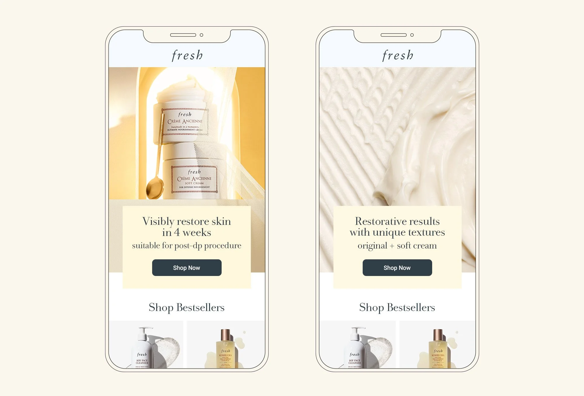 For the repromote of Fresh’s premium Creme Ancienne franchise, we highlighted the cream’s ability to support post-dermatological skin restoration. Drawing on the franchise’s heritage, I art directed the campaign primarily for Fresh’s largest market, China, creating assets across video, digital, in-store, and Sephora channels.